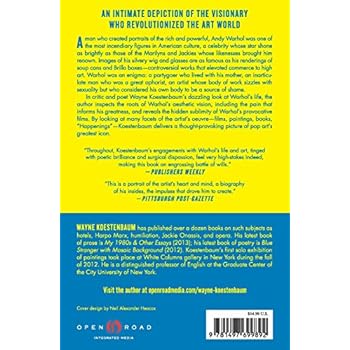 Review “Throughout, Koestenbaum’s engagements with Warhol’s life and art, tinged with poetic brilliance and surgical dispassion, feel very high-stakes indeed, making this book an engrossing battle of wills.” —Publishers Weekly “This is a portrait of the artist’s heart and mind, a biography of his insides, the impulses that drove him to create.” —Pittsburgh Post-Gazette “[Koestenbaum] gives us a Warhol who is ineffably sad but heroic too: a man full of bravado, patience, energy and devotion to work, to making things. It’s a book that should tempt both those generally familiar with Andy Warhol and, even more, young people who have trouble imagining how popular art can challenge the status quo.” —Los Angeles Times Read more About the Author Wayne Koestenbaum has published over a dozen books on such subjects as hotels, Harpo Marx, humiliation, Jackie Onassis, and opera. His latest book of prose is My 1980s & Other Essays (2013); his latest book of poetry is Blue Stranger with Mosaic Background (2012). Koestenbaum’s first solo exhibition of paintings took place at White Columns gallery in New York during the fall of 2012. He is a distinguished professor of English at the Graduate Center of the City University of New York. Read more